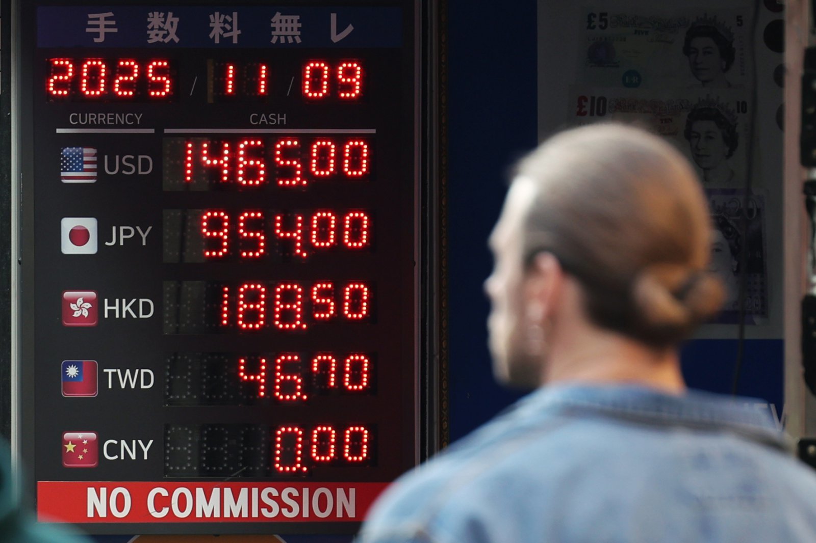 원·달러 환율이 7개월 만에 1460을 돌파한 가운데 9일 서울 중구 명동의 한 환전소 앞 전광판에 환율이 표시되고 있다. 2025.11.9 뉴스1