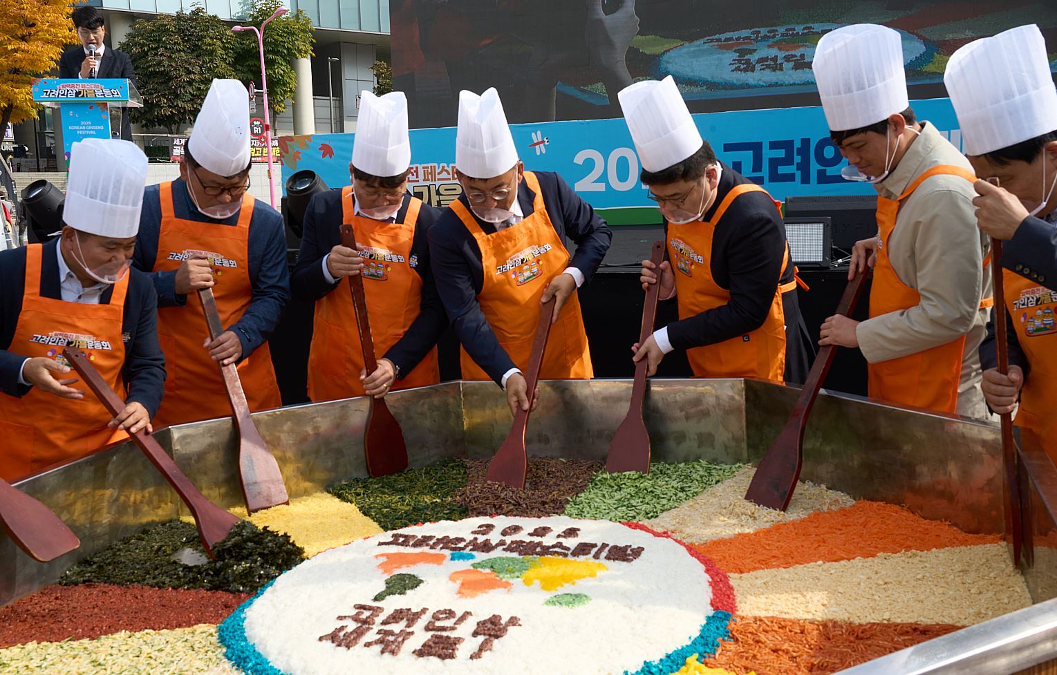 2025 고려인삼 페스티벌에서 ‘고려인삼 세계로’라는 메시지가 적힌 대형 비빔밥 퍼포먼스를 진행하고 있다. 한국인삼협회 제공