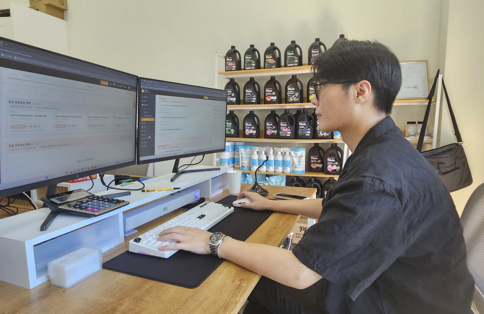 김민기 프로코 대표가 테무 주문 건을 확인하는 모습