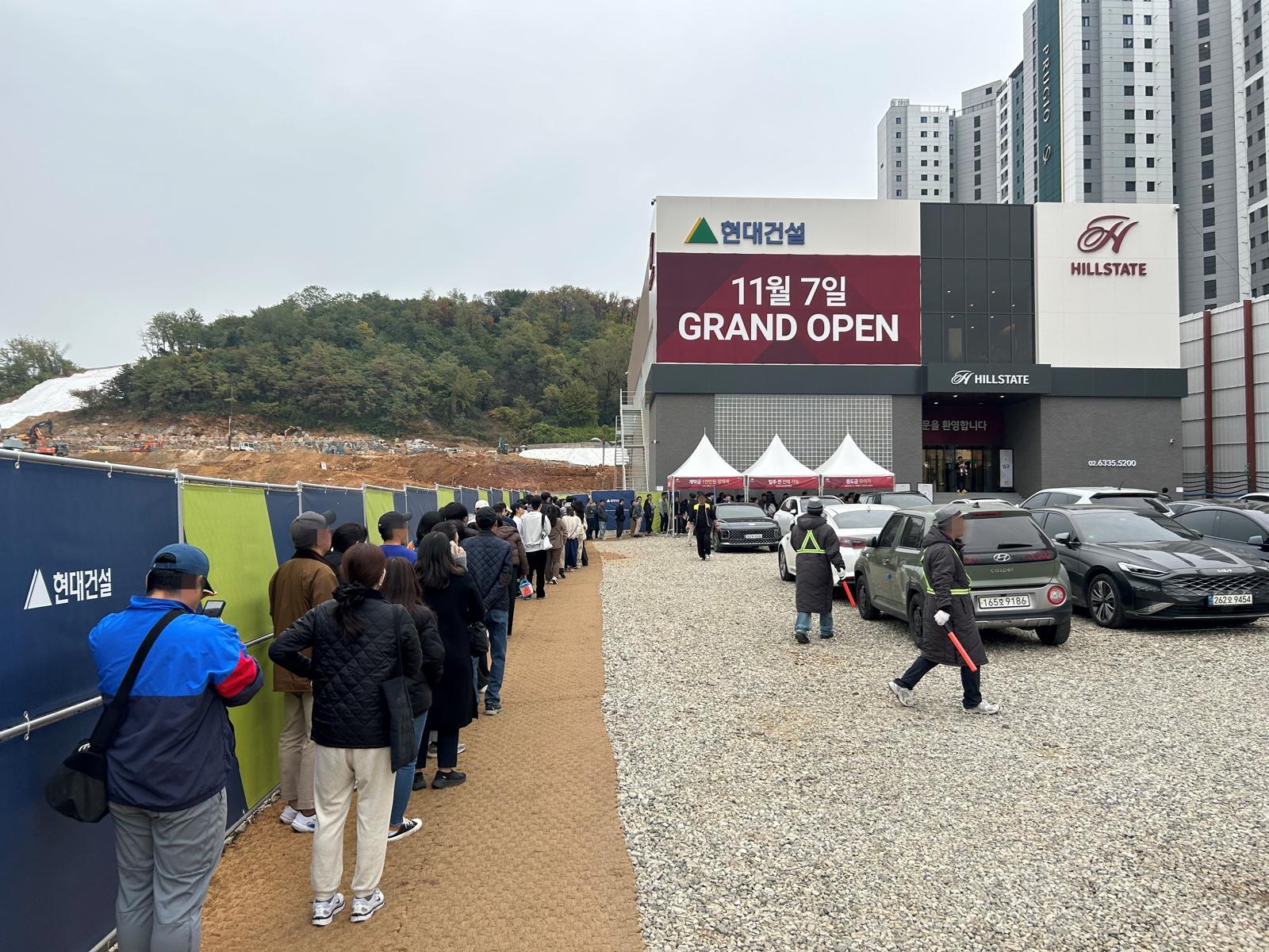 현대건설에 따르면 개관 첫 주말부터 견본주택 입장을 기다리는 긴 줄이 형성됐고, 1층 대형 모형도와 유니트 내부를 확인하려는 내방객으로 붐볐다. 방문객 상당수는 가족 단위 실수요층으로 단지 배치·조망·평면 구조 등을 꼼꼼히 살피며 청약 상담을 진행했다.