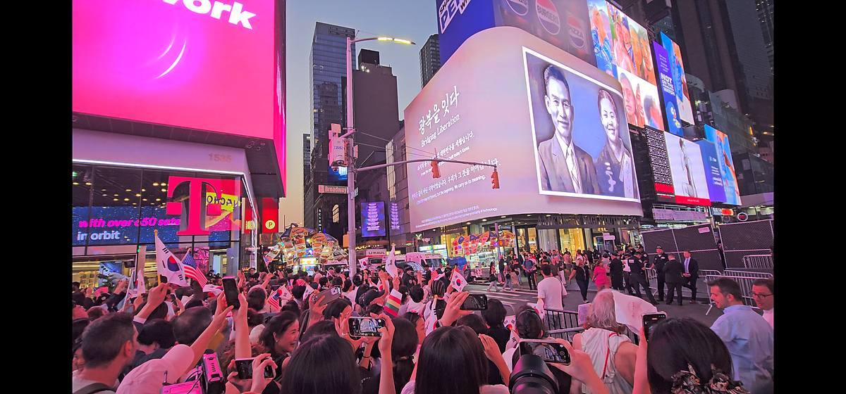 8월 15일 미국 뉴욕 타임스퀘어에서 열린 순국 선열 영상 / 출처=충남콘텐츠진흥원