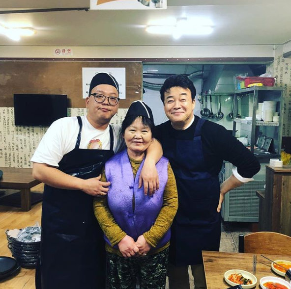 (오른쪽부터) 백종원 더본코리아 대표와 ‘홍탁집’ 점주 권상훈 씨와 어머니가 함께 촬영했다. 스포츠동아DB