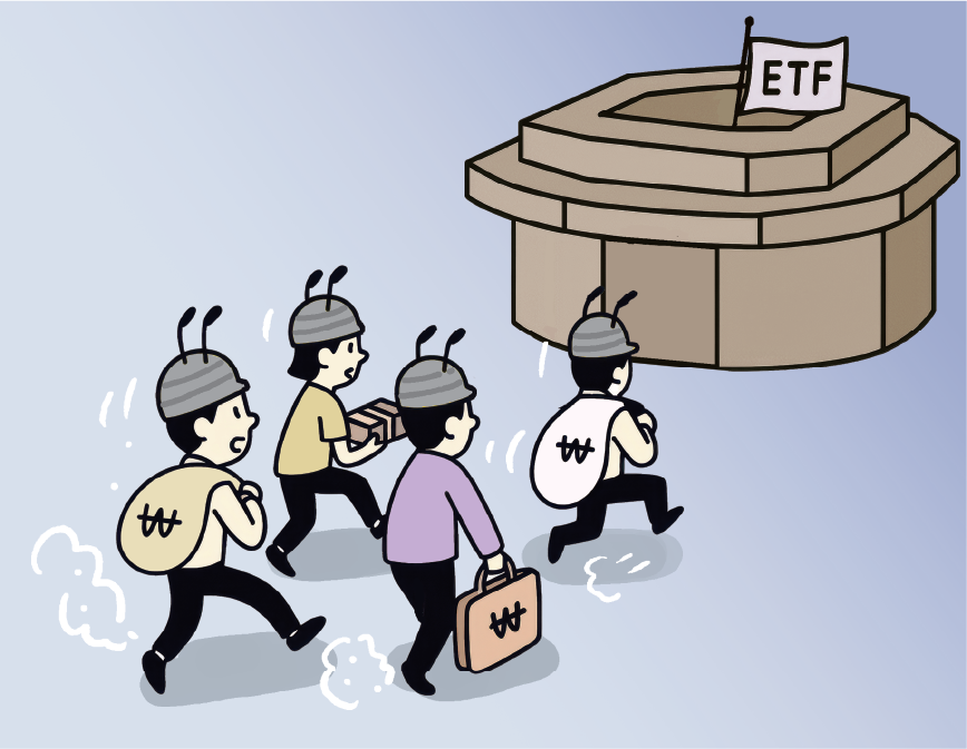 개미들은 ETF 투자를 통해 과거보다 국내 투자를 늘리고 있다. 코스콤에 따르면 개인 투자자들은 올해 국내 지수 추종 ETF를 총 13조8271억 원어치 순매수했다. 국내에 상장된 해외 지수 추종 ETF 순매수액은 14조2171억 원어치였다. 반면 지난해에는 국내 지수 ETF(약 6조 원어치) 순매수액이 해외 지수 ETF(약 13조 원어치)의 절반 수준이었다. 국내외 투자액 격차가 좁혀졌다.