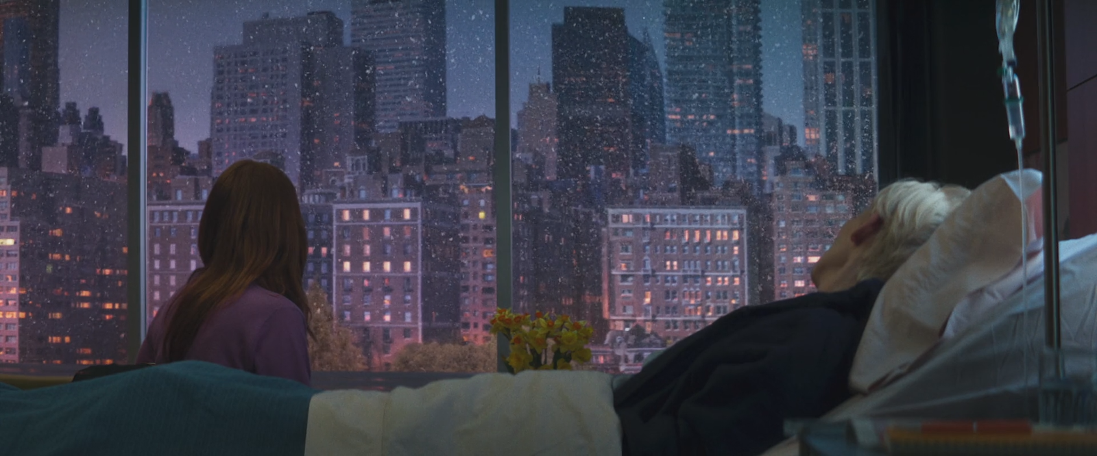 ‘룸 넥스트 도어’에서 암 투병 중인 마사(오른쪽)는 절친 잉그리드와 함께 병실에서 눈 내리는 정경을 바라보며 제임스 조이스의 소설 ‘죽은 사람들’을 떠올린다.