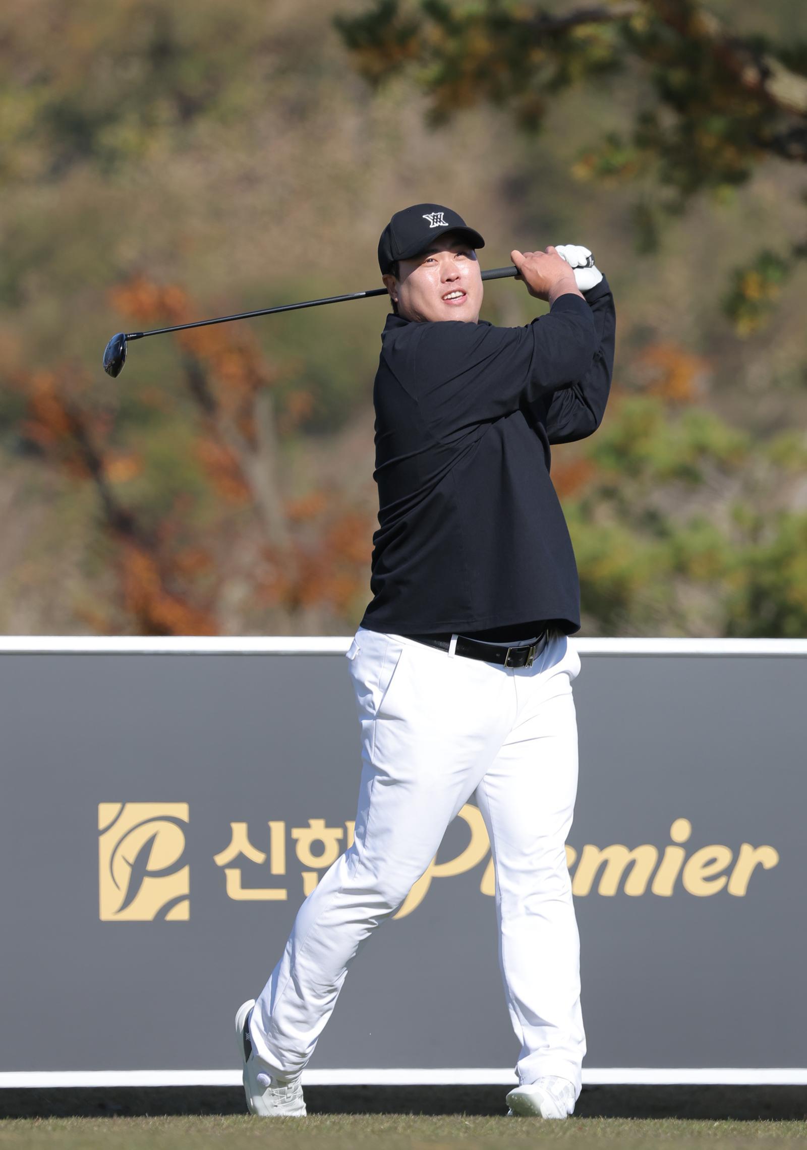 프로야구 한화 투수 류현진이 12일 강원 횡성 벨라45 컨트리클럽에서 열린 ‘이수그룹과 함께하는 2025 류현진 재단 자선 골프대회’에서 티샷을 하고 있다. 이날 행사에는 박찬호, 이대호, 이정후 등 전현직 야구 선수들과 연예인 등 100여 명이 참가했다. 류현진은 작년부터 11월에 야구 꿈나무 육성과 희귀·난치병 환아 지원 기금 마련을 위한 자선 골프대회를 열고 있다.