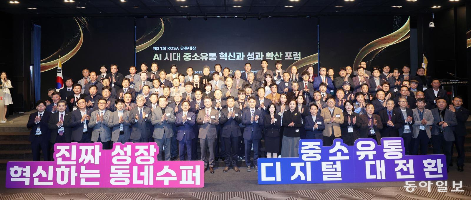 13일 오후 서울 영등포구 여의도 중소기업중앙회 KBIZ홀에서 열린 ‘제31회 KOSA유통대상 시상식’. 한국수퍼마켓협동조합연합회(회장 송유경)는 13일 오후 서울 영등포구 여의도 중소기업중앙회 KBIZ홀에서 ‘제31회 KOSA유통대상 시상식’과 ‘AI시대 중소유통 혁신과 성과 확산 포럼’을 개최했다.