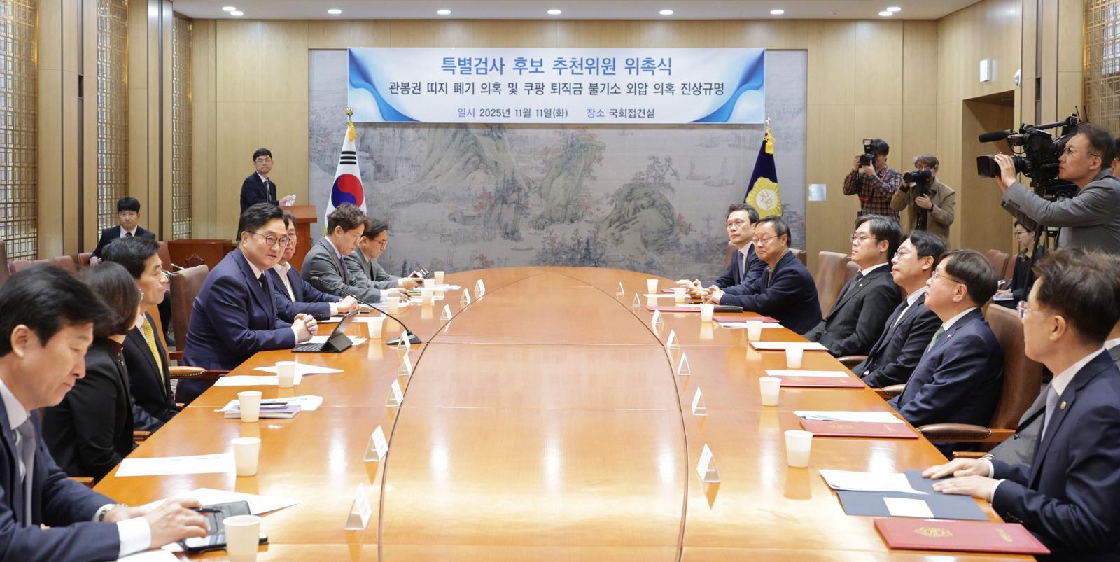 국회는 “위원들은 심사 대상자의 경력을 바탕으로 심사 대상자들이 관봉권 띠지 폐기 의혹 및 쿠팡 퇴직금 불기소 외압 의혹에 대한 독립적이고 공정한 수사를 진행할 수 있는지, 특별검사의 임무를 수행하기 위한 수사 역량 등 전문성을 갖추었는지 등을 종합적으로 심사했다”고 밝혔다.