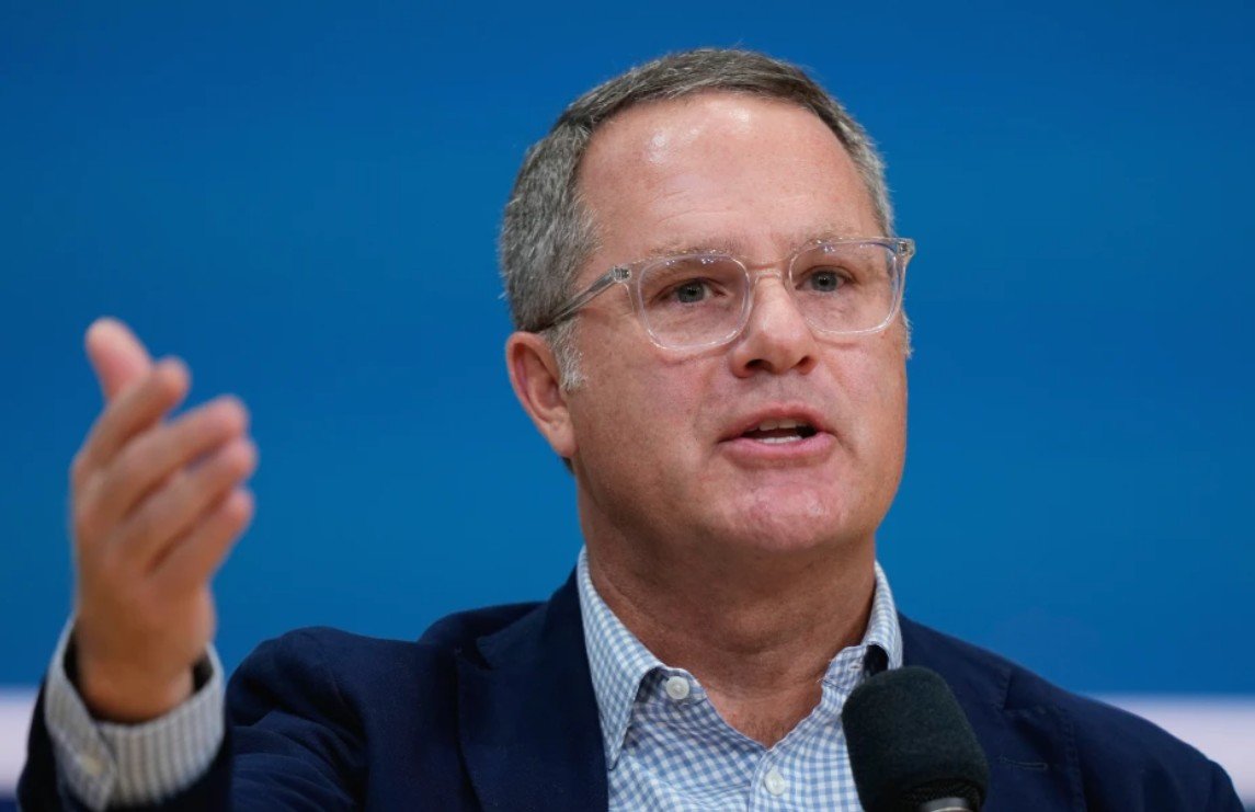 미국 최대 유통업체 월마트의 최고경영자(CEO) 더그 맥밀런이 9월 25일 아칸소주 벤튼빌에서 열린 한 회의에서 연설하고 있다. 벤튼빌=AP 뉴시스