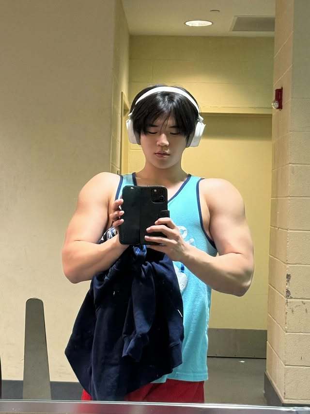 사진 속 윤후는 우람한 팔근육과 넓은 어깨를 드러내며 한층 벌크업된 체격을 자랑했다. 반면 얼굴은 여전히 앳된 모습으로, 변한 몸과 대비를 이뤘다.