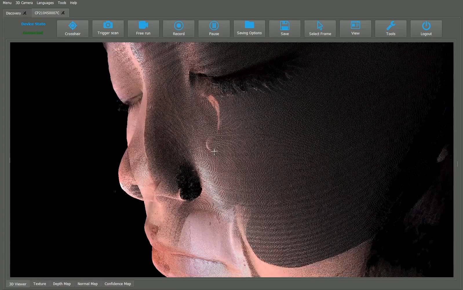 클레의 3D머신비전 기술이 사람 얼굴 내 400만개 지점에 대해 0.1mm 오차로 촬영한 화면. 클레 제공
