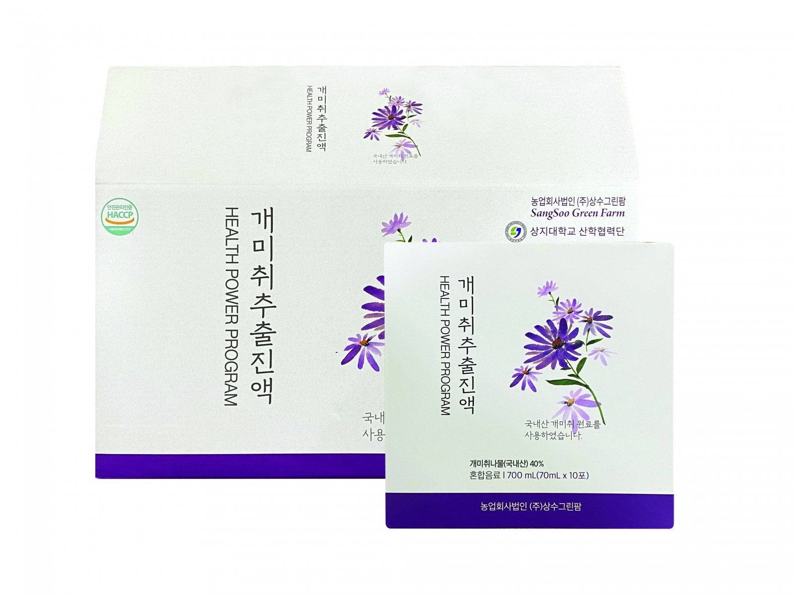 농업회사법인 ㈜상수그린팜이 상지대와 산학협력을 통해 ‘개미취추출진액’과 ‘자완환’을 개발했다. 이 제품은 폐의 기를 늘려주고 폐를 맑게 하는 효능이 있어 어르신이나 흡연자에게 선물용으로 좋다고 한다.