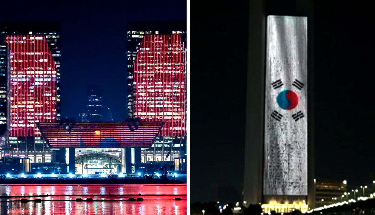 아랍에미리트(UAE)가 국빈 자격으로 방문 중인 이재명 대통령에게 최고 수준의 예우를 갖추고 있는 것으로 나타났다. 아부다비의 주요 랜드마크 건물 외벽에 태극기 조명을 점등하는 등 정성을 쏟는 모습이다.