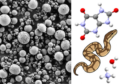 고해상도 전자 현미경을 사용해 파충류의 체내 시스템이 사람과 무엇이 다른지 탐구한 결과 이들 파충류는 지름 1~10마이크로미터 크기의 미세 요산 구체를 배출하는 것으로 나타났다. 이 구체는 물과 요산의 결합체인 더 작은 나노 결정들이 뭉쳐 형성되며, 질소 성 부산물을 안전하게 저장하고 독성을 완화하는 역할을 한다.