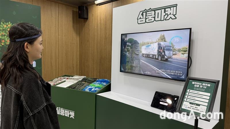 ‘심쿵마켓’에서는 제주개발공사의 주요 사업을 ▲먹는샘물(제주삼다수를 포함한 생수 사업) ▲미래 계획 ▲감귤 가공(제주산 감귤을 활용한 제품 개발) ▲지역 개발 및 공공사업 등 4가지 테마로 나누어, 각 분야의 이야기를 재미있게 체험할 수 있다. 단순히 물건을 보는 전시에서 그치는 것이 아니라, AI 기술을 활용해 직접 참여하는 형식이 특징이다.