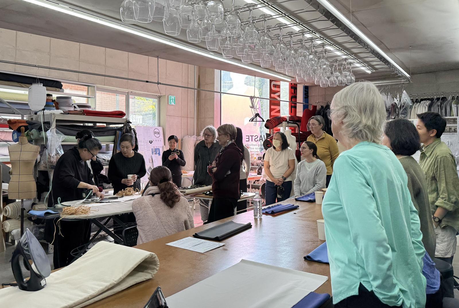 미국 샌프란시스코에서 활동 중인 이영민 보자기 작가가 다양한 분야의 창작자들과 함께 10월 17일 파츠파츠 랩을 방문했다. 특히 ‘1yd Pilot Free-making’이라는 제목으로 진행된 워크숍을 통해 폐원단을 활용해 자유롭게 디자인과 재단을 해보는 등 제로 웨이스트 패턴 구조와 무봉제 공정을 직접 체험했다. 파츠파츠 제공