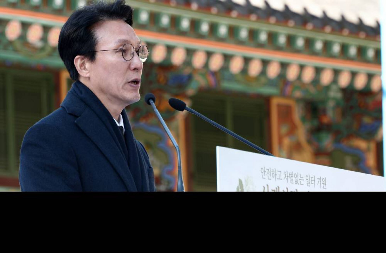 김민석 국무총리가 지난 18일 오후 서울 종로구 조계사에서 열린 산재사망 희생자 추모 위령재에서 추모사를 하고 있다. 2025.11.18/뉴스1