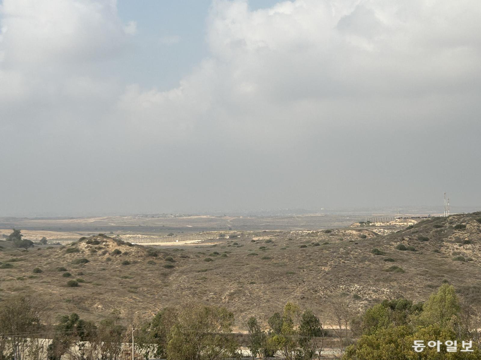이스라엘 남부 스데롯 지역 전망대에서 바라본 가자지구. 가자전쟁 1단계 휴전이 이뤄졌지만, 전망대 1.3km 전방에 위치한 가자지구에선 무장세력 하마스의 지하터널을 파괴하는 군사 작전이 펼쳐져 포격음이 들렸다. 스데롯=유근형 특파원 noel@donga.com