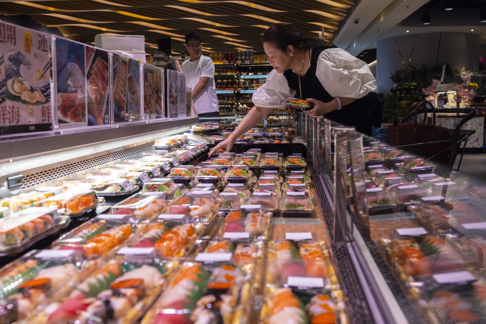 지난 2023년 7월 12일 홍콩에서 고객들이 일본산 수입 해산물을 둘러보고 있다. 2025.11.19 [홍콩=AP/뉴시스]