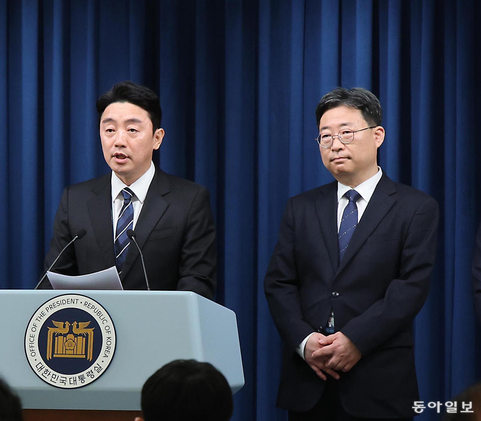 올해 6월 6일 강훈식 대통령비서실장이 하준경 경제성장수석비서관(오른쪽)의 임명을 발표하고 있다.