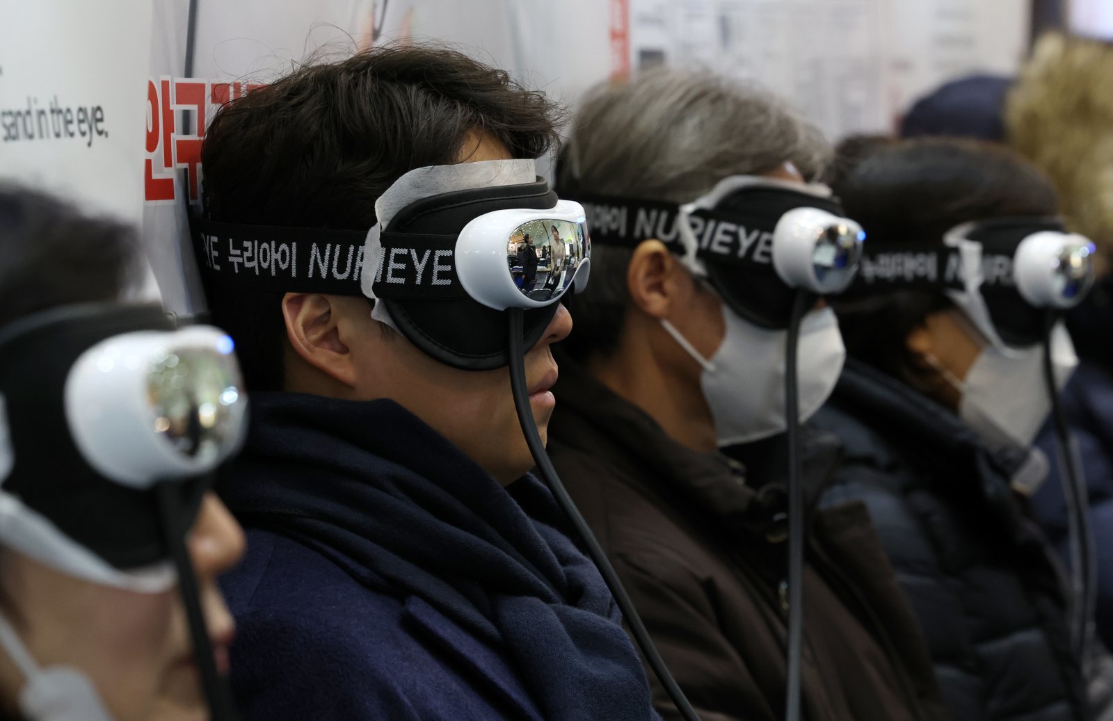 12일 오후 서울 강남구 코엑스에서 열린 제8회 서울 건강산업 박람회를 찾은 관람객들이 안구건조증 치료 의료기기를 체험하고 있다. 2024.01.12. [서울=뉴시스]