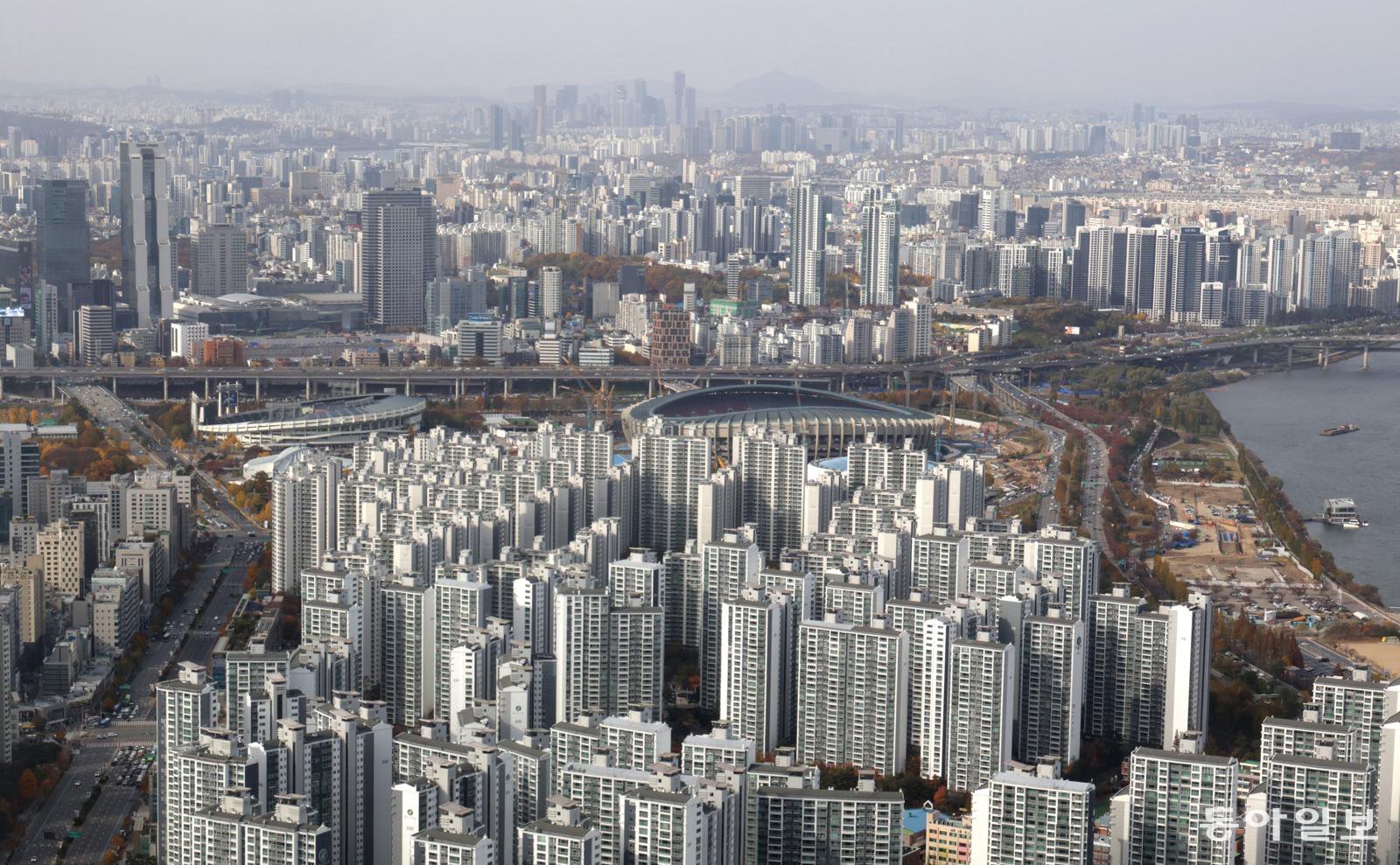 서울 송파구 잠실의 재건축이 끝난 아파트들이 시그니엘 서울에서 보이고 있다. 변영욱 기자 cut@donga.com