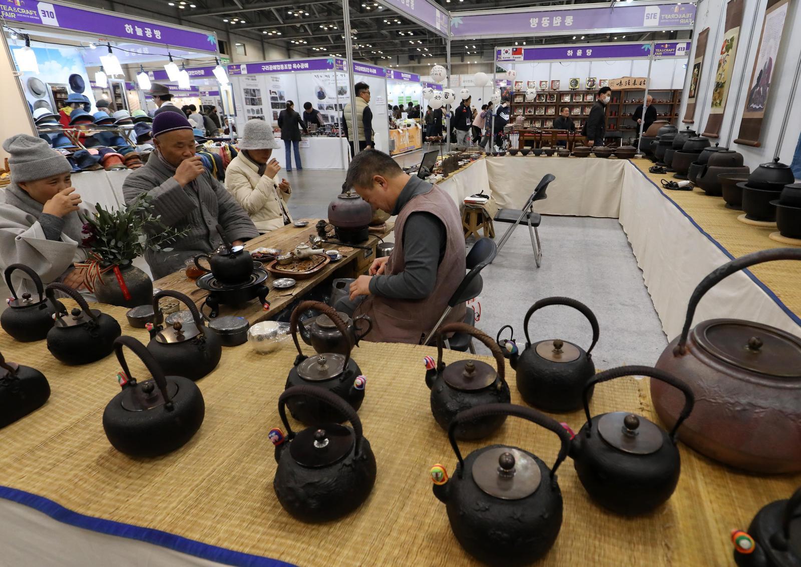 20일 부산 해운대구 벡스코 제1전시장에서 열린 ‘2025 부산 차·공예 박람회’에서 관람객들이 다양한 차를 시음하고 있다. 전국 각지의 다양한 차와 공예품을 선보이는 이번 박람회는 23일까지 개최된다.