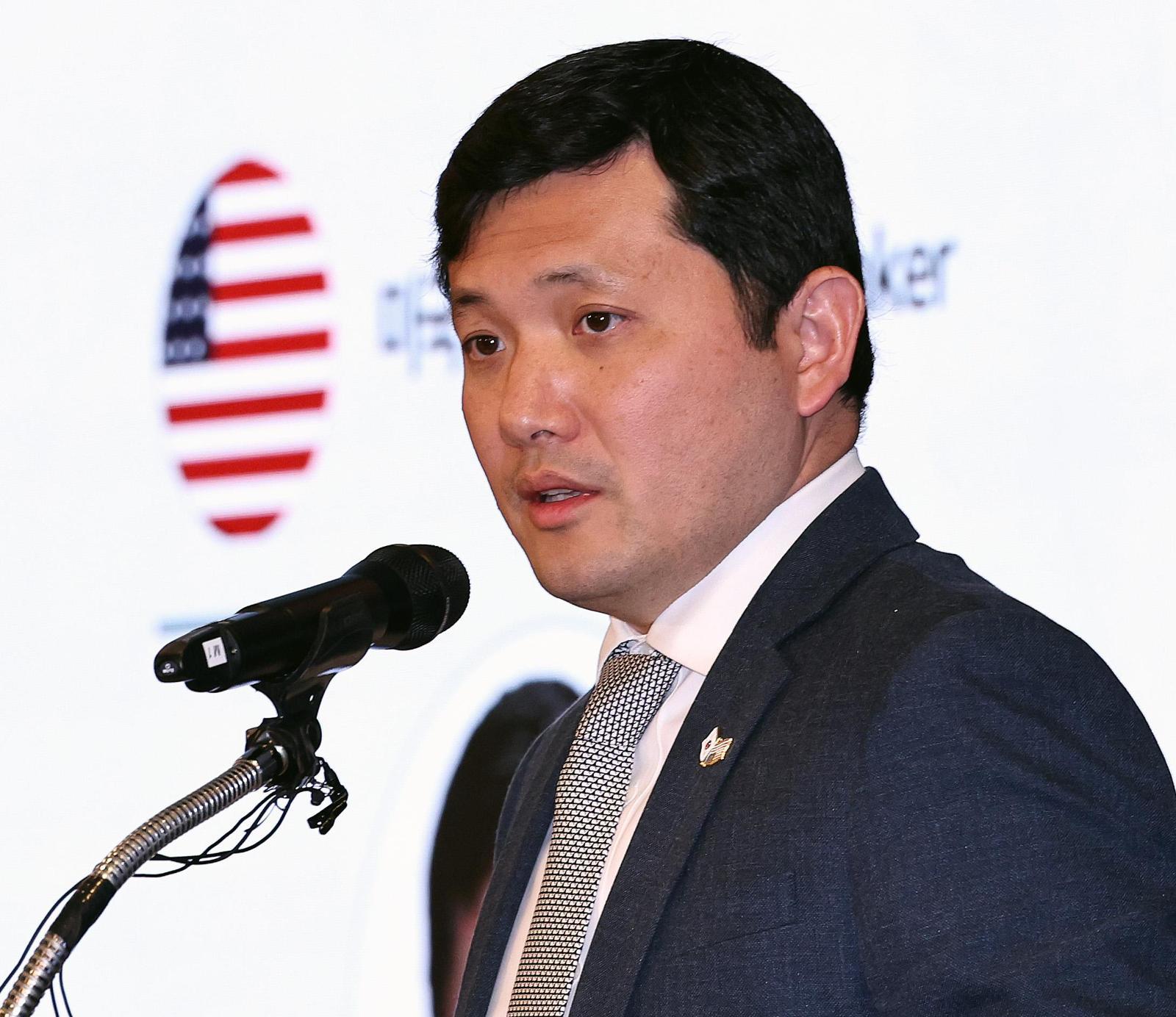 김 대사대리는 이날 서울 중구 롯데호텔에서 한미의원연맹이 주최한 ‘제1회 한미외교포럼’에서 기조연설을 통해 “우리(한미)의 상호 번영은 안정적인 안보 환경에 기반을 둔다”며 “우리는 역내 도전 과제가 진화하고 있다는 것을 인식하고 함께 협력해 대응해야 한다”고 말했다. 이어 “특히 서해에서 일어나는 일을 보면 (그 이유를) 알 수 있다”며 “그렇기에 도널드 트럼프 미 대통령과 이재명 대통령은 한국 국방비를 증액하고 핵잠과 같은 새 역량을 도입하며 도전 과제에 대응하기로 한 것”이라고 했다.