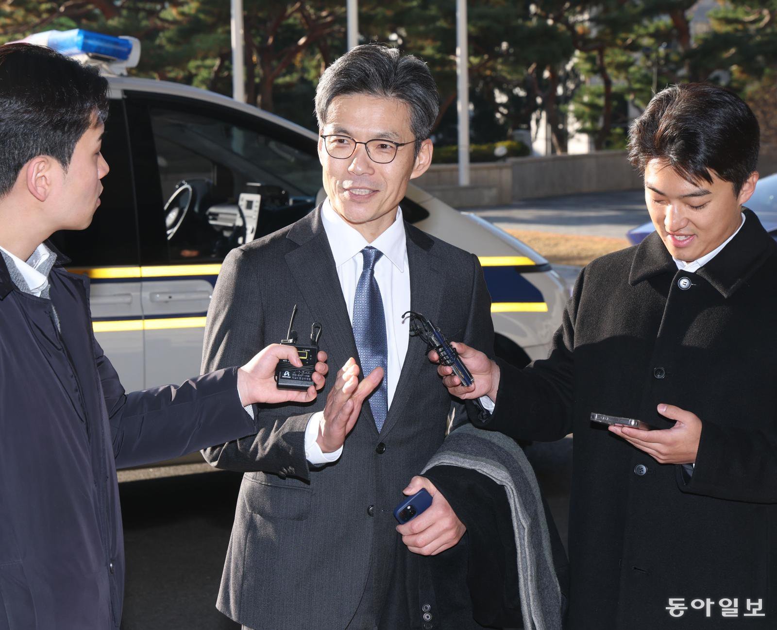 박철우 신임 서울중앙지검장이 21일 서울 서초구 중앙지검으로 첫 출근을 하며 기자들의 질문에 답하고 있다. 신원건 기자 laputa@donga.com