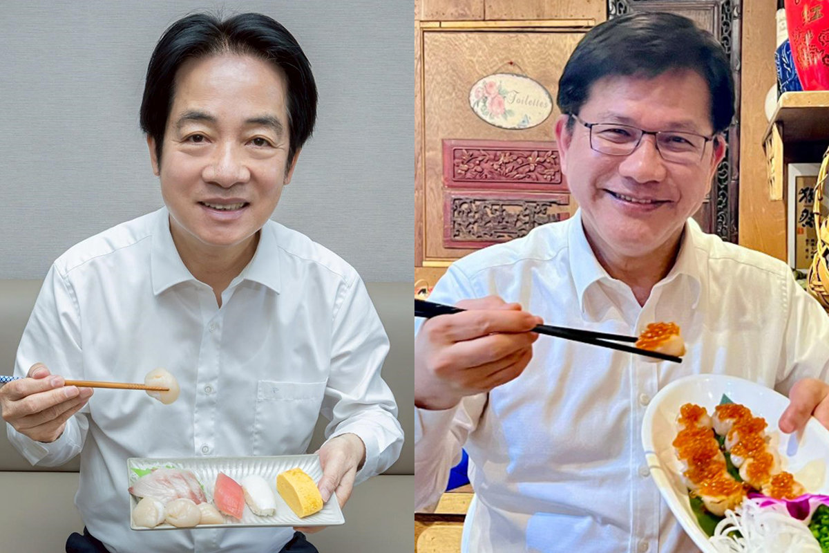 라이칭더 대만 총통(왼쪽)과 린자룽 대만 외교부장이 소셜네트워크서비스(SNS)에 일본산 수산물을 먹는 사진을 게시했다. SNS 캡처