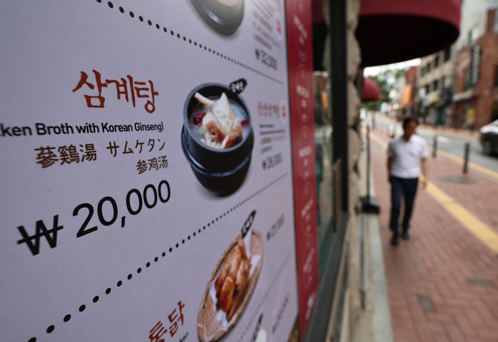 13일 서울시내의 한 삼계탕 전문식당에 삼계탕 가격이 2만원을 가리키고 있다. 2025.7.13/뉴스1