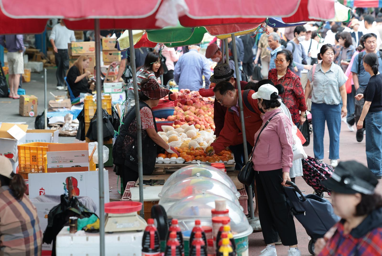 서울 동대문구 청량리 청과물시장을 찾은 시민들이 제수용품을 둘러보고 있다. 2025.10.3/뉴스1