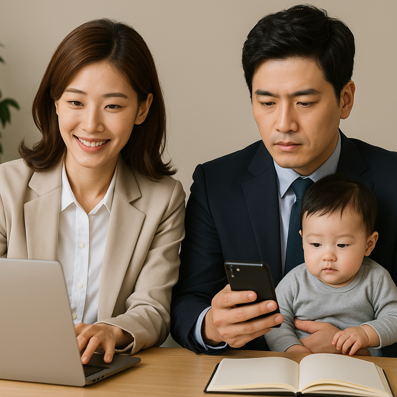 맞벌이 가구일수록 충분한 소득이 확보되면 남편의 가사·육아 참여가 늘고 출산 여력도 커진다는 한국은행 분석이 나왔다. ChatGPT 제작