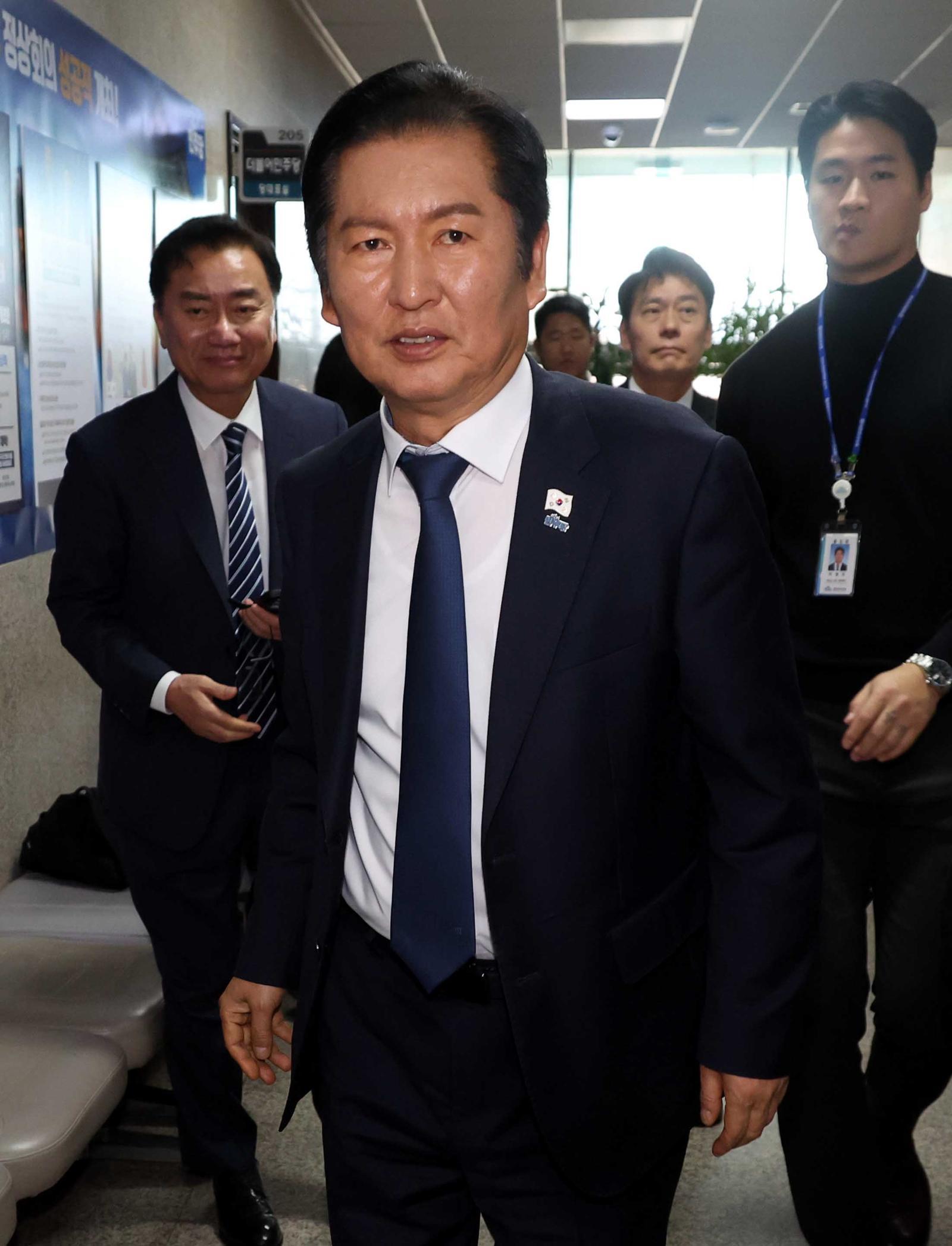 정청래 더불어민주당 대표가 24일 오후 서울 여의도 국회에서 열린 당무위원회에서 ‘당원 1인 1투표제’ 관련 논의를 마치고 밖으로 나서고 있다. 2025.11.24. 뉴시스