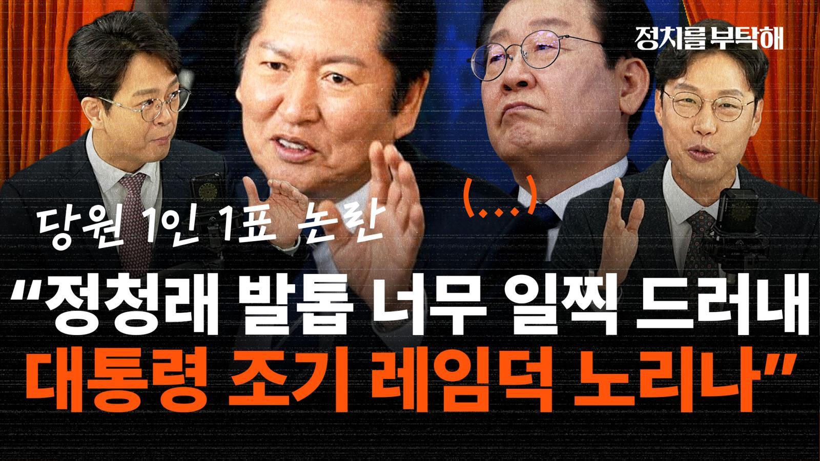 ▷ 권오혁: 사실 용산 그러니까 이재명 대통령이 이 사안을 어떻게 바라보느냐가 굉장히 중요할 것 같습니다. 말씀하신 대로 이제 사정 얘기하신 것도 어떻게 보면 대통령의 뜻과는 좀 어긋나는 부분이 있으니 그렇게 연결이 될 수도 있을 것 같은데 아까 말씀을 해 주셨으니 소장님께서는 이재명 대통령은 지금 1인 1표제나 이런 정청래 대표의 행동에 대해 어떻게 좀 보고 계실 걸로 보시나요?