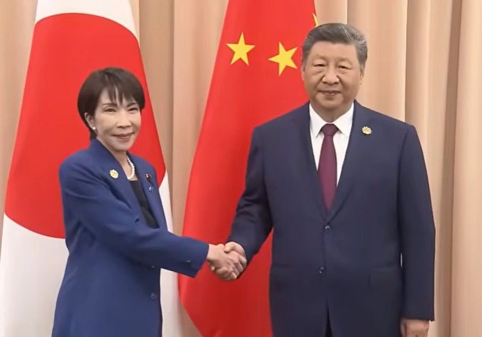 지난달 31일 다카이치 사나에 일본 총리와 시진핑 중국 국가주석이 경주 아시아태평양경제협력체(APEC) 정상회의를 계기로 가진 첫 대면 정상회담을 앞두고 악수를 하고 있다. 일본 ANN뉴스 유튜브