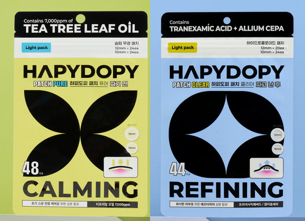 하피도피 패치 퓨어 라이트팩은 0.1㎜ 두께의 얇은 무광 패치로 총 48매(10㎜·12㎜ 구성)가 들어 있다. 티트리잎 오일 7000ppm과 5가지 진정 성분을 함유해 초기 트러블을 빠르게 진정시키며 피부에 자연스럽게 밀착돼 티 나지 않는 커버가 특징이다.