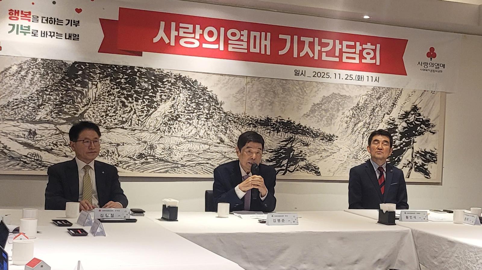 사랑의열매는 25일 기자간담회를 열고 ‘사랑의 온도탑’을 다음달 1일 오후 2시 서울 광화문 남측 광장에 세운다고 밝혔다. 왼쪽부터 사랑의열매 김형철 부회장, 김병준 회장, 황인식 상근이사. 박태근 기자 ptk@donga.com 올해 캠페인의 가장 큰 변화는 ‘기부 수단의 확장’이다. 사랑의열매는 8월 가상자산 거래소 업비트를 운영하는 두나무와 업무협약을 체결하고, 비현금성 자산·디지털 자산을 활용한 기부 기반을 마련해 왔다. 내달에는 NFT를 발행해 구매자용(판매형)과 고액 가상자산 기부자 예우용(비매품형) 두 종류로 출시하고, 수익금을 지역사회 위기 가구에 지원할 계획이다.