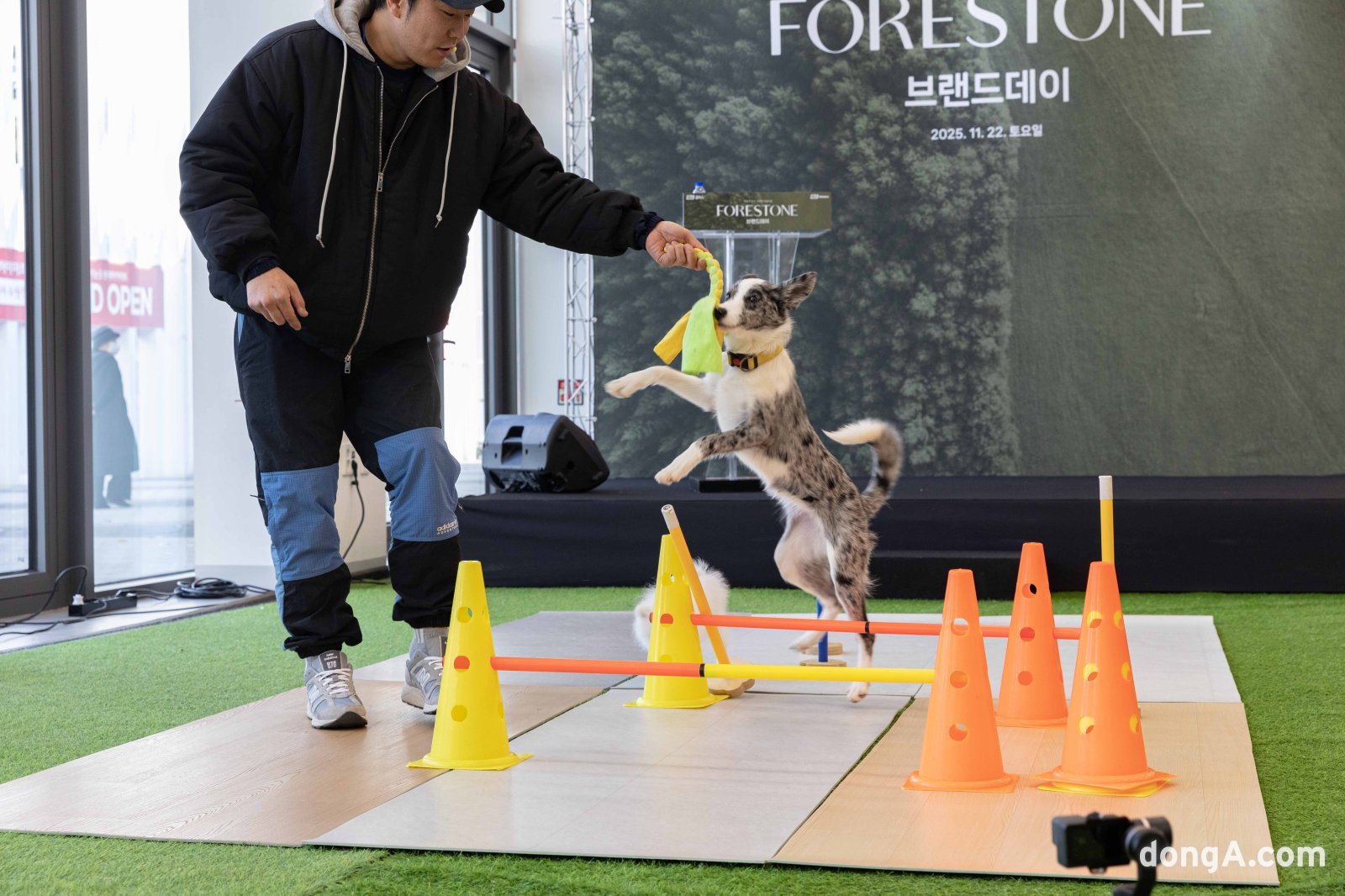 또한 유튜브 채널 ‘개랑해TV’를 운영하는 조재호 훈련사와 반려견 3마리가 포레스톤 위에서 다양한 활동 모습을 선보이며 ‘반려동물 제품 인증(PS인증)’을 받은 반려동물 친화 바닥재로서 제품이 가진 강점을 참석자들에게 효과적으로 전달했다. 이밖에도 퀴즈와 함께하는 제품 소개 시간을 통해 포레스톤의 기능과 장점을 알아보는 시간도 마련됐다.