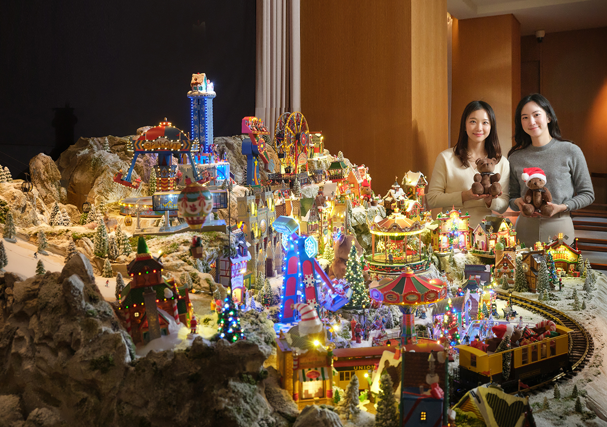 서울신라호텔은 연말이면 호텔 로비, 아케이드, 영빈관 후정 등 호텔의 주요 공간에 붉은 색감과 트리 및 크리스마스 장식을 더하고 있다. 올해는 19층 라운지에 ‘메리 신라 빌리지(Merry Shilla Village·사진)’를 설치해 투숙객들에게 새로운 즐길 거리와 포토 스팟을 제공한다. ‘메리 신라 빌리지’는 ‘신라베어가 여행 중 우연히 발견한 크리스마스 마켓’을 콘셉트로 조성했다. 크리스마스 오르골, 놀이공원과 스키장이 있는 산타 마을 등 눈 덮인 동화 속 장면을 연출한다. 19층 라운지의 메리 신라 빌리지는 올해 말까지, 로비와 영빈관 후정의 크리스마스 장식은 내년 2월 14일까지 선보인다.