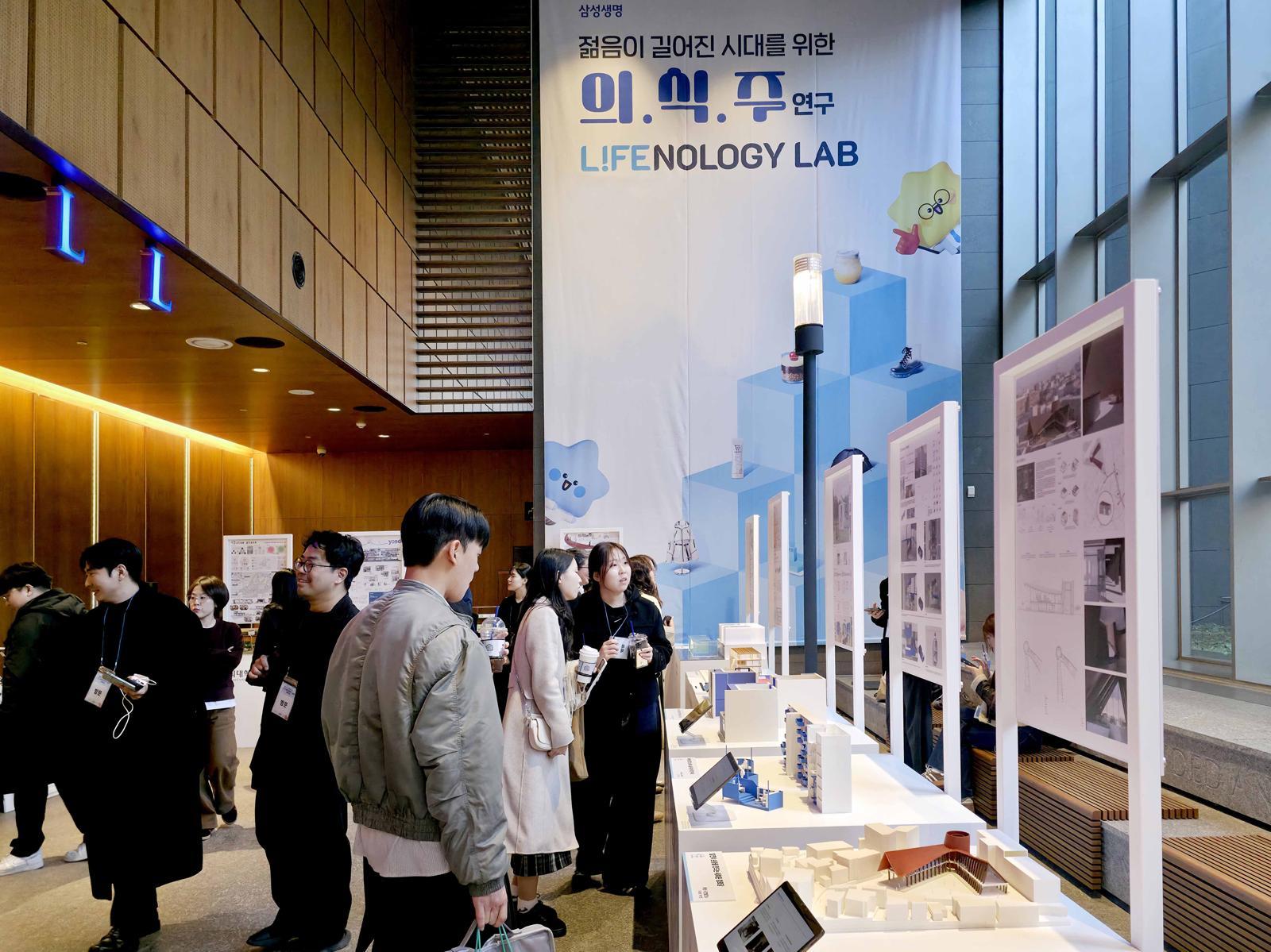 삼성생명에 따르면 이번 전시는 ‘길어진 인생을 행복하게 만들기 위해 보험은 무엇을 해야 할까?’라는 질문에서 시작됐다고 한다. 올해 1월 첫 번째 전시회에 이어 두 번째로 열린 이번 전시에는 ‘젊음이 길어진 시대’를 주제로 의류디자인학과, 식품영양학과, 건축학과 등 다양한 전공의 학생들과 교수진이 참여했다.