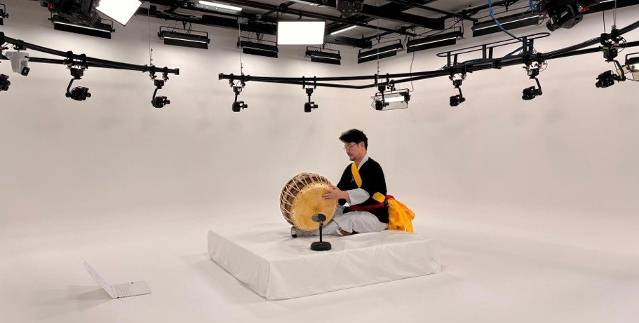 HyperXR스튜디오는 첨단 영상 제작 기술과 온라인 교육 콘텐츠 개발 환경이 결합된 차세대 통합형 스튜디오로 사이버대학 최초로 다각뷰 카메라 시스템을 활용한 360도 촬영이 가능하다.