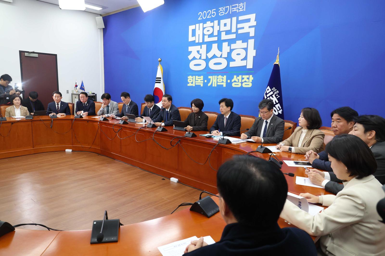 김병기 더불어민주당 원내대표가 25일 오전 서울 여의도 국회에서 열린 원내대책회의에서 발언을 하고 있다. 2025.11.25. 서울=뉴시스