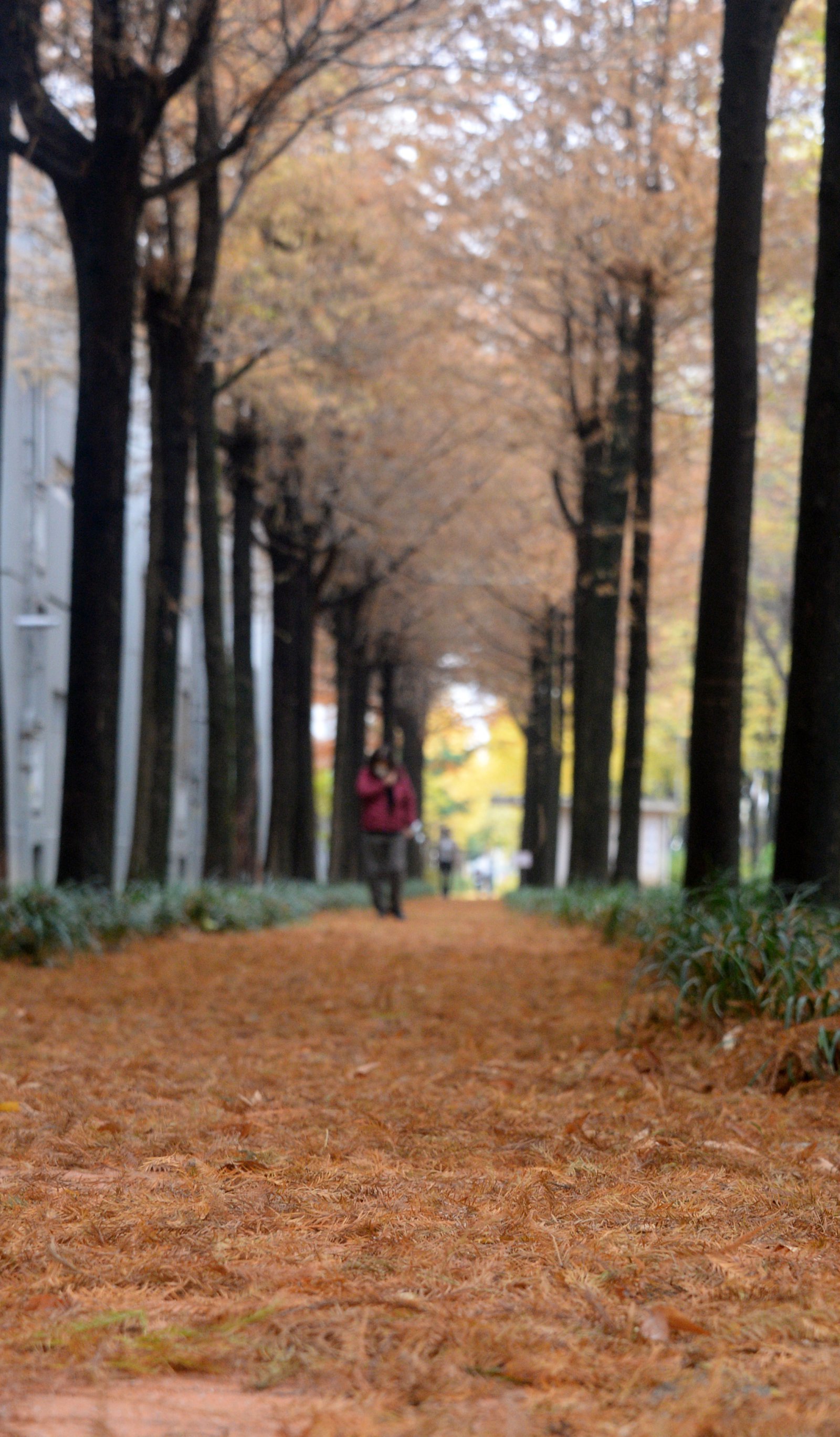 쌀쌀한 가을 날씨가 이어지고 있는 25일 전북 전주시 완산구 온고을로에서 시민들이 낙엽을 밟으며 산책을 즐기고 있다. 2025.11.25. [전주=뉴시스]