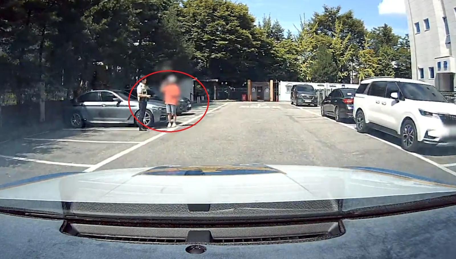 이후 경찰은 단속 장비 정비를 위해 잠시 경찰서로 들어갔다. 그런데 이때 사이드미러에 한 차량이 경찰서 주차장으로 따라 들어오는 모습이 포착됐다.