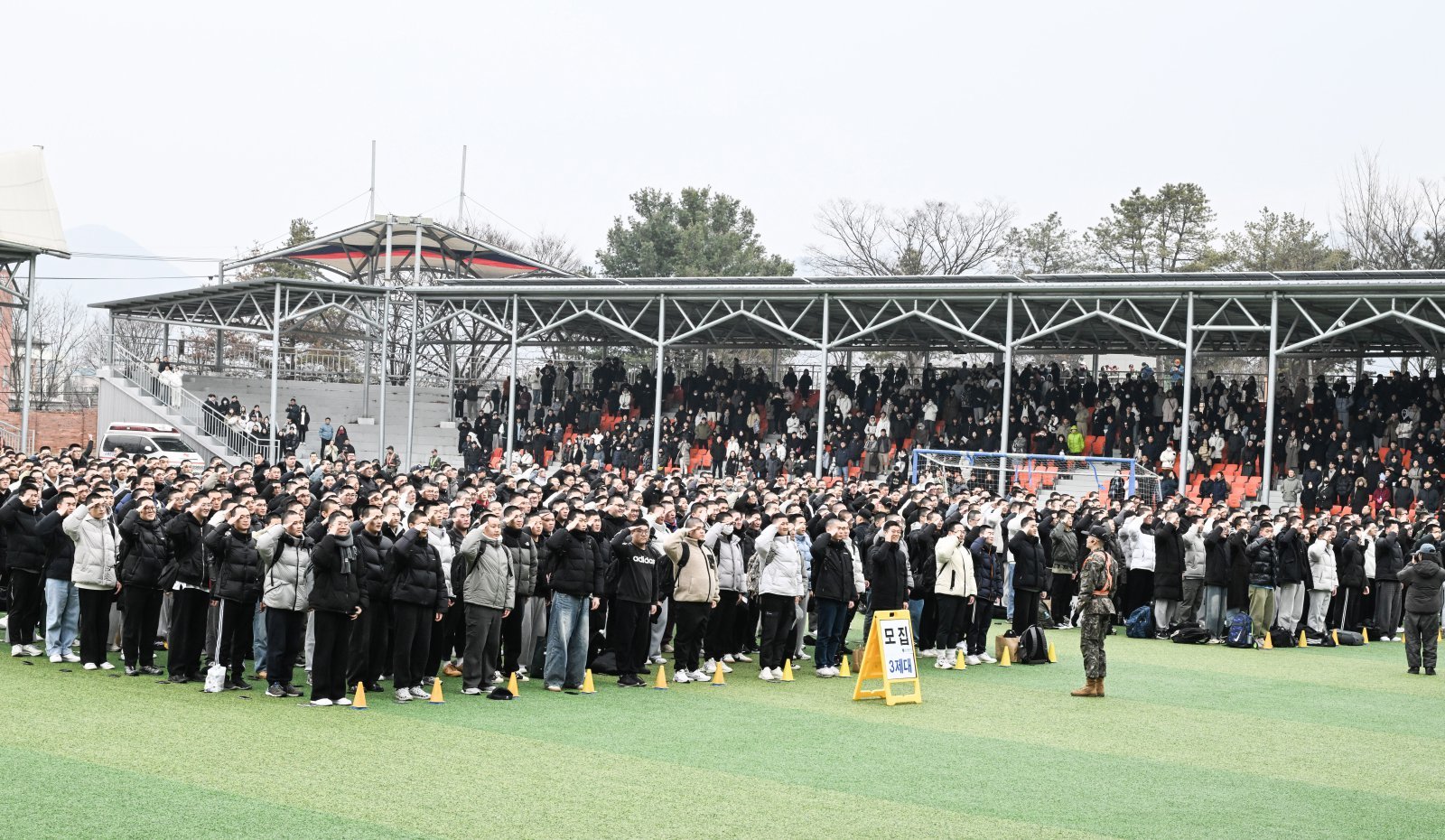 충남 논산에 위치한 육군훈련소에서 열린 2025년 첫 현역병 입영행사에서 입영장정들이 경례하고 있다.(육군 제공) 2025.1.6