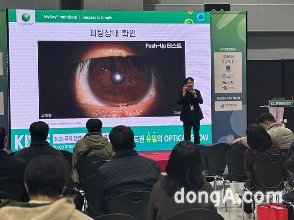이번 행사는 증가하는 노안 인구에 대응하기 위해 기능성 렌즈를 주제로 다양한 기업이 발표를 이어갔다. 노안은 수정체 탄력 저하로 가까운 곳 초점 조절 능력이 떨어지는 현상이며, 대한민국 인구 약 5168만 명 중 상당수가 노안 환자다. 디지털 기기 사용 시간 증가와 근거리 작업 인구 확대가 노안 인구 증가를 가속하는 것으로 분석된다.