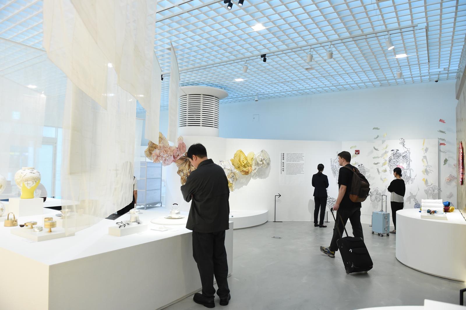 흙으로 빚어낸 도자공예도 만나게 된다. 달항아리와 청화기법을 사용해 구름에 싸여 용이 승천하는 모습을 섬세하고 역동적으로 표현한 ‘백자청화구름탈용항아리’가 돋보인다. 목칠공예 코너에서는 전통 규방 가구를 현대적 소재와 디자인으로 재해석해 만든 사방탁자와 같은 가구들이 전시된다. 섬세한 바느질과 화려한 자수의 예술성을 보여주는 섬유공예 작품에 감탄하게 된다.