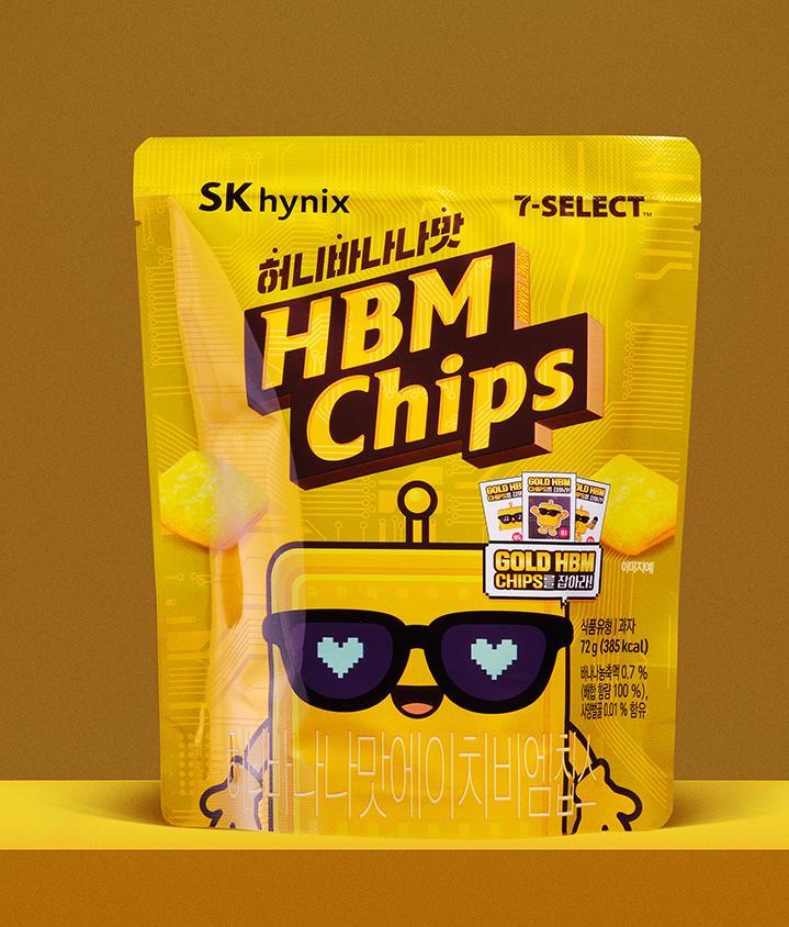 SK하이닉스는 26일 편의점 세븐일레븐과 함께 반도체 콘셉트의 과자 ‘허니바나나맛 HBM 칩스(Chips·사진)’를 출시한다고 밝혔다.