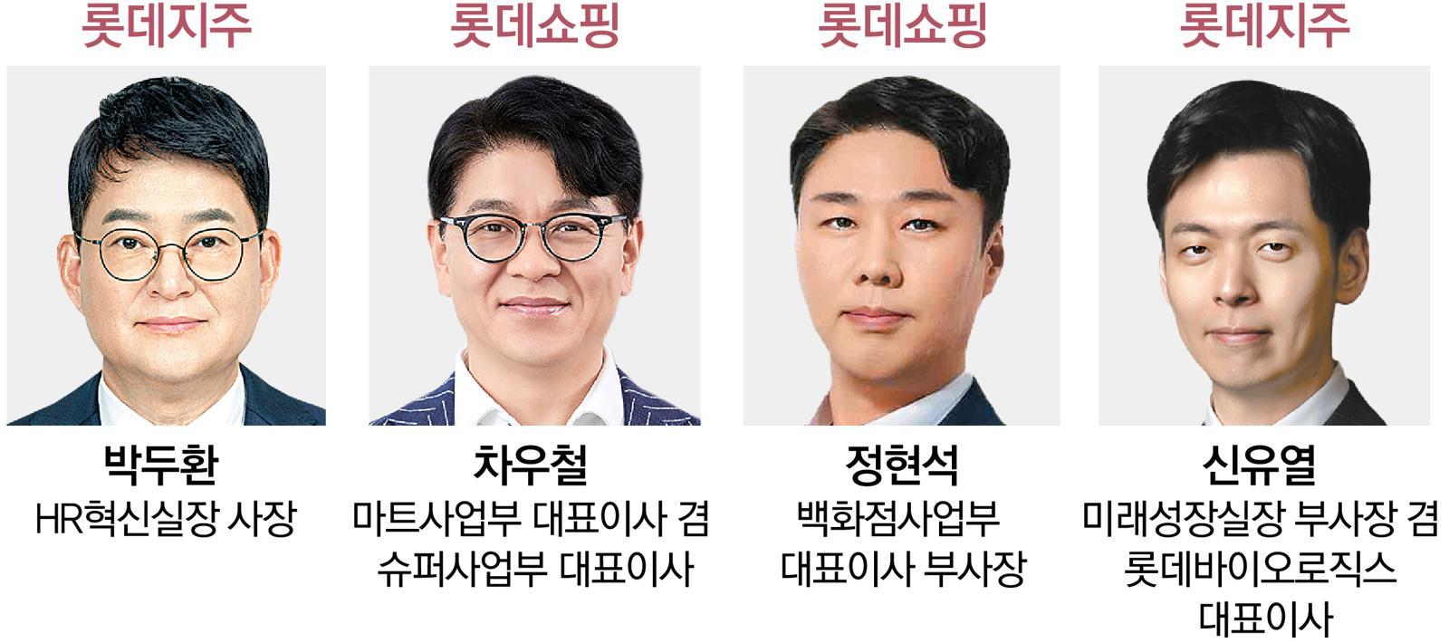 롯데백화점 대표로 발탁된 정현석 롯데백화점 아울렛사업본부장(50)은 롯데백화점 역대 최연소 대표다. 2020∼2024년 유니클로 국내 사업을 운영하는 FRL코리아 대표를 맡아 적자였던 회사를 흑자 전환한 성과를 인정받았다. 차우철 롯데GRS 대표(57)는 롯데마트·슈퍼 대표이사 사장으로 승진 내정됐다. 롯데웰푸드 대표에는 서정호 혁신추진단장 부사장(56), 롯데건설 대표에는 오일근 부사장(57), 롯데e커머스 대표는 추대식 전무(53)가 승진하며 선임됐다.