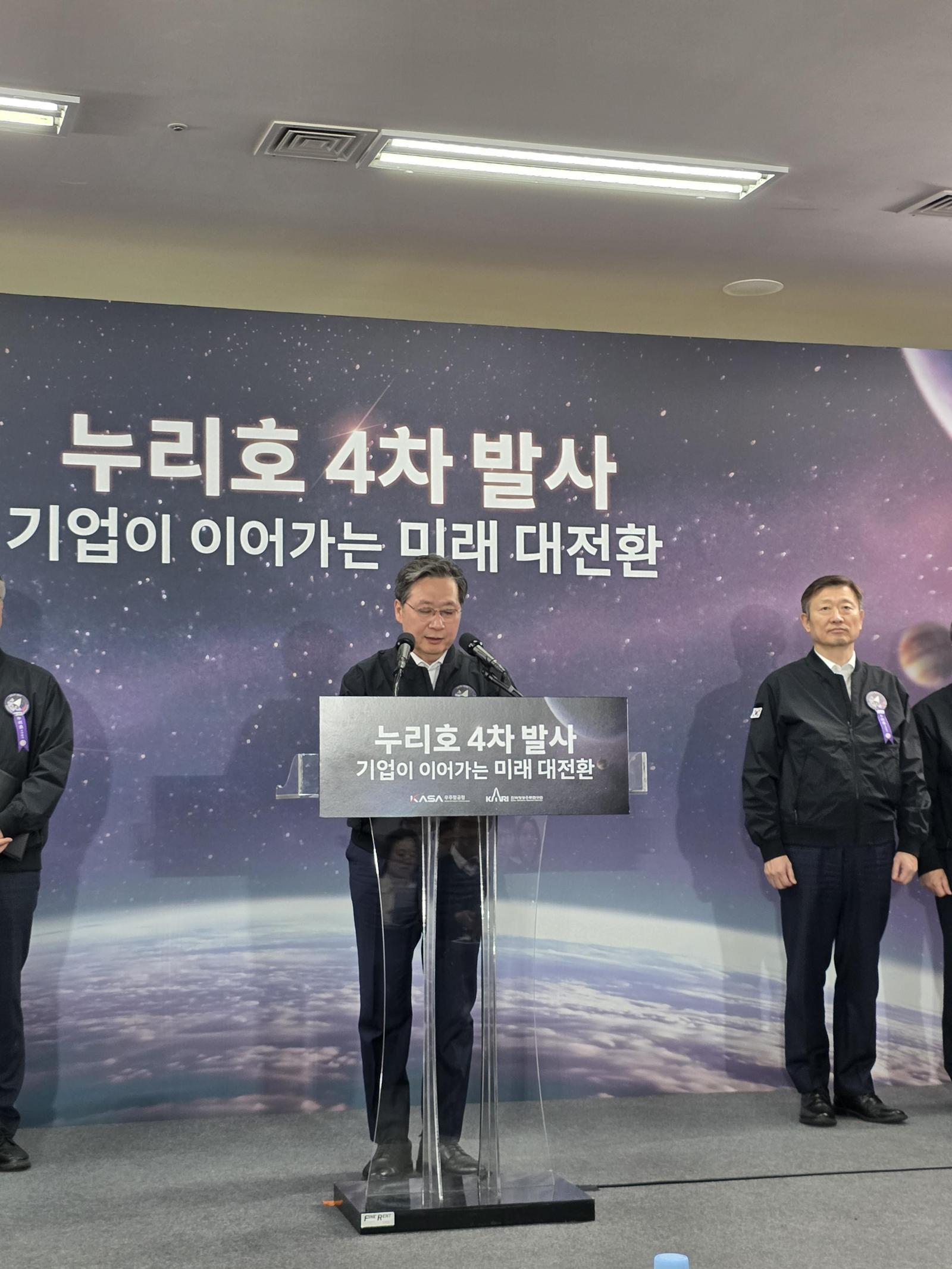 오후 8시 15분부터 전남 고흥 나로우주센터 프레스센터에서 열린 발사 시각 확정 브리핑에서 윤영빈 우주항공청장은 “기술적 준비 상황, 기상 상황, 우주 환경, 우주물체와의 충돌 가능성 등을 종합적으로 검토해 최종 결정했다”고 했다. 이어 “어제는 날씨가 좋지 않았는데 오늘은 발사하기에 최적의 조건을 갖추고 있다”며 “오늘 발사는 기대해도 될 것 같다”고 했다.